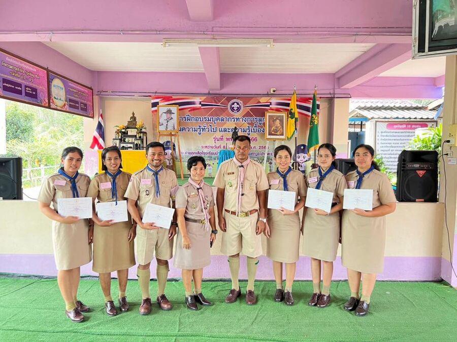 โรงเรียนบ้านควนนกหว้าและสโมสรลูกเสือเมืองลิกอร์ กำหนดฝึกอบรมผู้กำกับลูกเสือสำรองขั้นความรู้ทั่วไป (G.I.C.) และขั้นความรู้เบื้องต้น (B.T.C.)ระหว่างวันที่ ๘ - ๑๑ ธันวาคม ๒๕๖๖ ณ ค่ายลูกเสือโรงเรียนบ้านควนนกหว้า ตำบลหารเทา อำเภอปากพะยูน จังหวัดพัทลุง สำนักงานเขตพื้นที่การศึกษาประถมศึกษาพัทลุง เขต ๒ ในการนี้ นายศุภโชค คงรอด ผู้อำนวยการโรงเรียนบ้านโคกม่วง (ดำประชาอุทิศ) พร้อมด้วย นางสุปราณี รวดเร็วและนางสาวเยาวลักษณ์ คุณัญญานนท์ ครูโรงเรียนบ้านโคกม่วง (ดำประชาอุทิศ) ได้เข้าร่วมฝึกอบรมบุคลากรทางการลูกเสือ และจากการอบรมได้มีการคัดเลือกประธานรุ่นของการอบรม โดยนายศุภโชค คงรอด ได้รับเสนอชื่อและคัดเลือกเป็นประธานรุ่นในการอบรมครั้งนี้ S:0